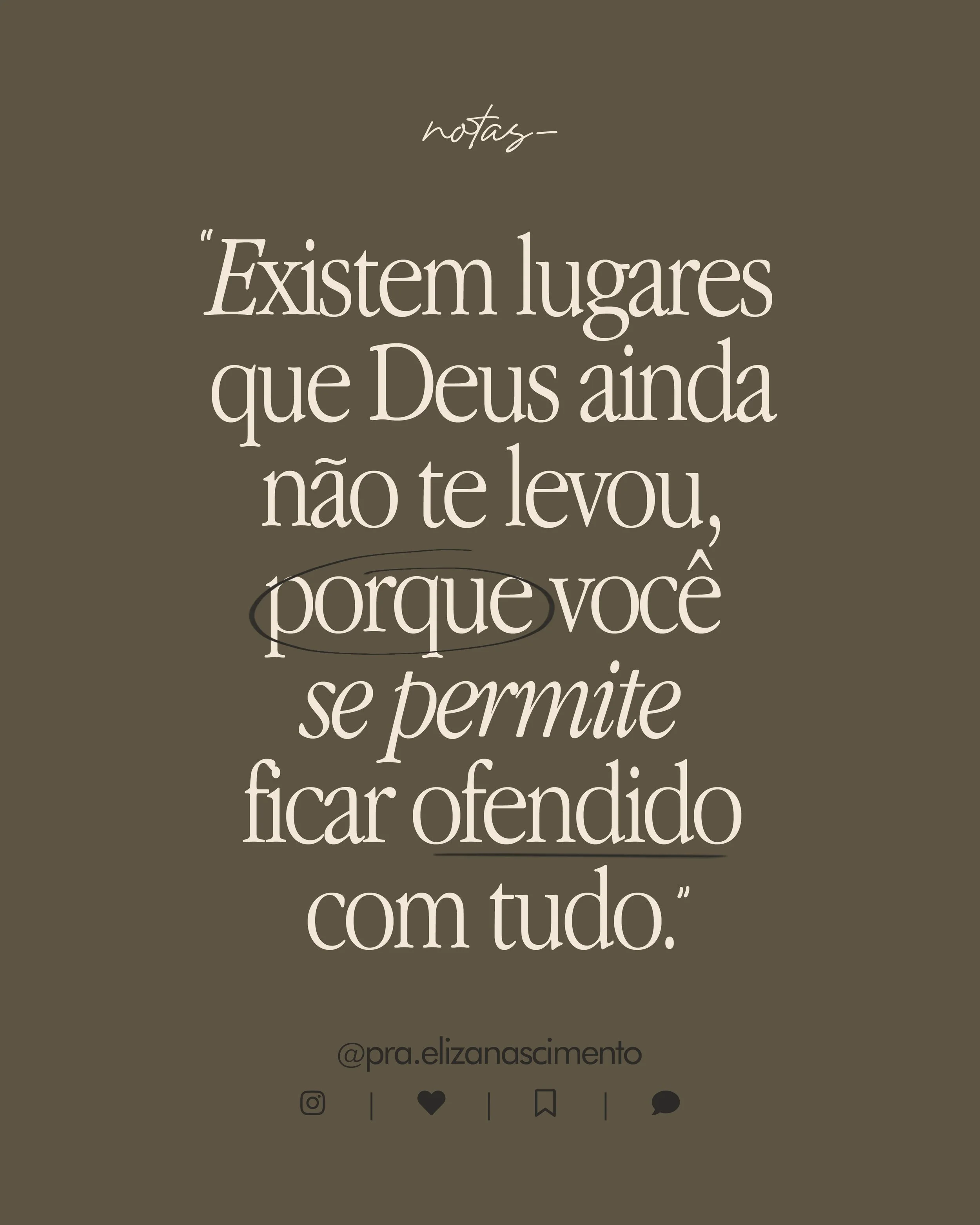 Existem estações que você precisa permanecer, mas existem etapas que você precisa deixar ir. Deixar ir TUDO aquilo que não está alinhado com a vontade de Deus sobre a sua vida. Deixar ir pessoas que não estão com o mesmo coração. Deixar ir quem não está disposto a correr na mesma intensidade. Deixar ir quem não tem o mesmo nível de fé e obediência.