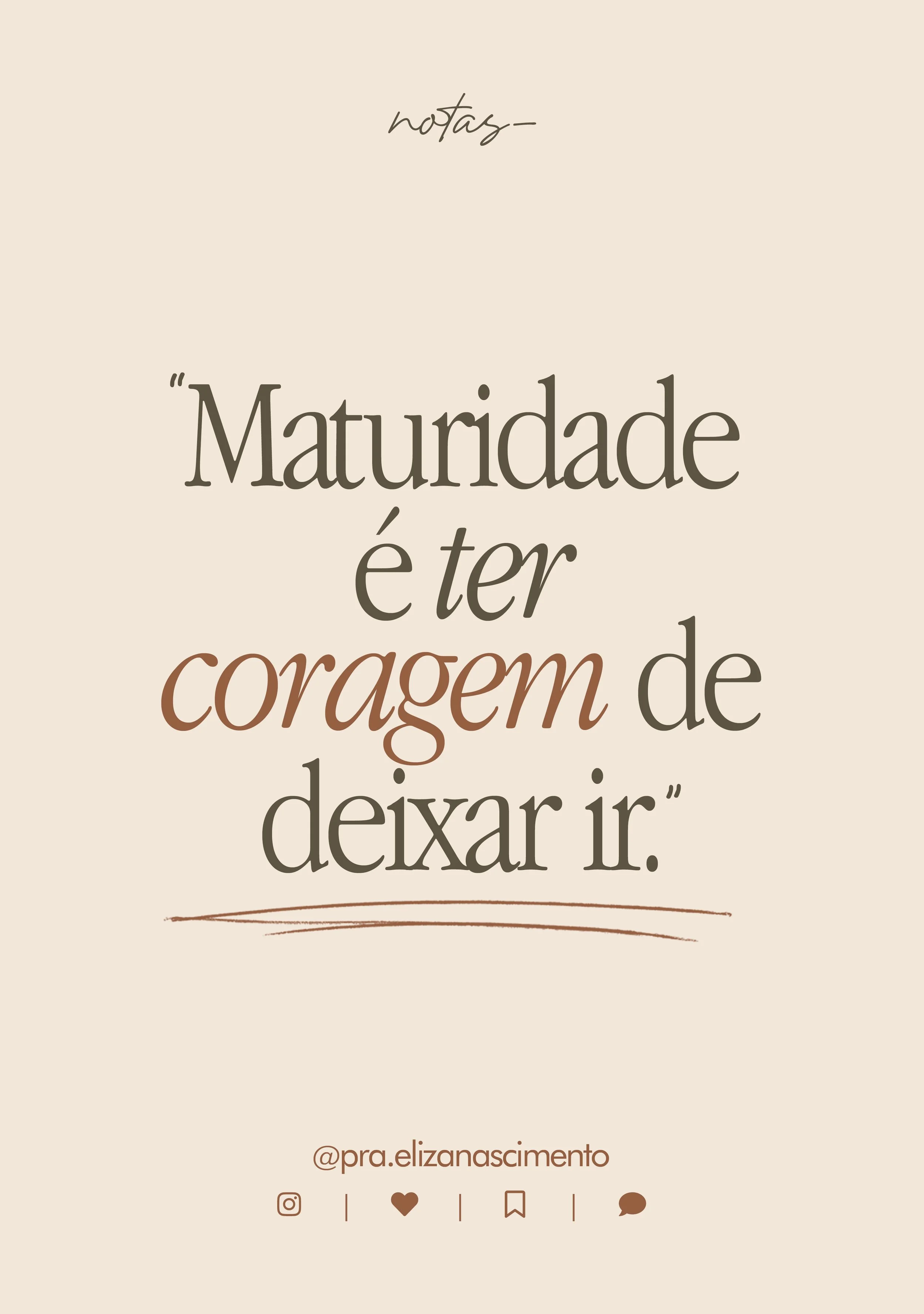Maturidade é você entender que tem pessoas que vão caminhar uma milha, mas nem todos estão dispostos a correr duas. Apenas seja maduro para deixar ir… Porque se já existe um desejo no coração do outro de ir, é porque o coração dele não está com você faz tempo. Então, é melhor deixar ir enquanto está tudo bem, do que ter problemas desnecessários.